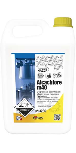 Dégraissant désinfectant alcalin chloré moussantTaux de dilution 0.5% à 6%HYDROXYDE DE SODIUM (CAS1310-73-2)2 mg/m3
