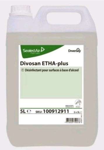 Divosan ETHA-plus contient 80% d’éthanol dénaturé et peut être utilisé pour nettoyer et désinfecter régulièrement les petites surfaces pendant la journée Pour une hygiène optimale, il est important d’utiliser Divosan Etha-plus à des fréquences régulières pour garantir une désinfection optimale.