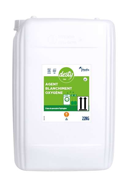 Agent de blanchiment liquide oxygénéA base de peroxyde d’hydrogène stabilisé à 35%Actif dès 60°CForte performance de blanchimentPour dosage automatique