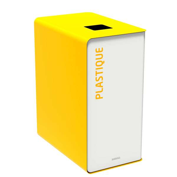 Borne de tri selectif 65l sans serrure - cubatri - tri plastique - blanc / jaune colza 1021